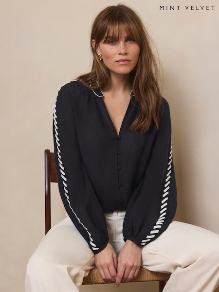 Albastru - Boden Broderie Ruffle Jersey Shirt
