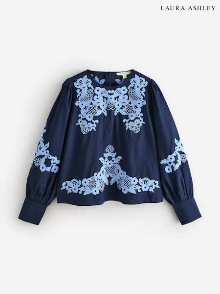 Laura Ashley Cotton Embroidered Long Sleeve Blouse