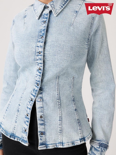 albastru melanj - Roman Floral Puff Print Stretch Shirt