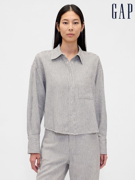 Albastru/alb în dungi - Gap Cotton Crop Shirt