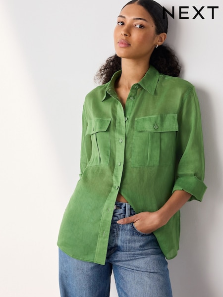Verde - N.Premium Sheer Utility Long Sleeve Shirt