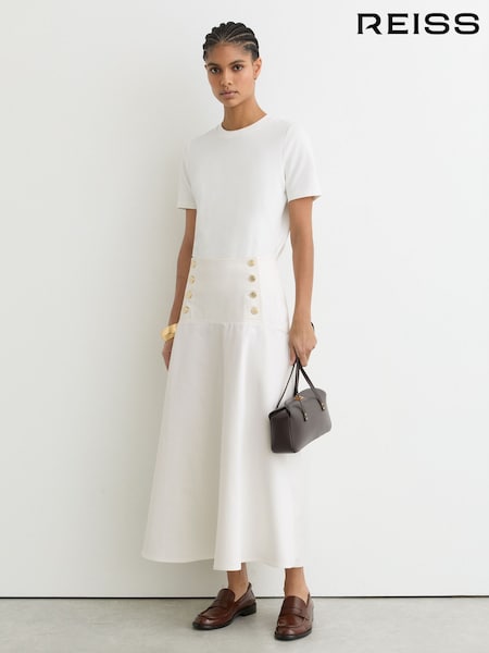Reiss Riley Cotton Button-Detail Midi Skirt