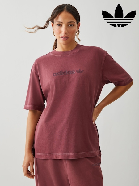 Roșu - adidas Originals Essentials Linear Boyfriend Oversized Washed T-Shirt