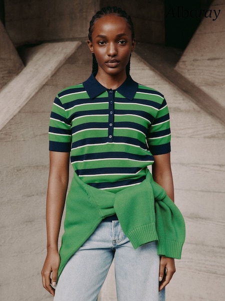 Albaray Green & Navy Stripe Short Sleeve Polo Shirt