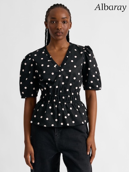 Albaray Large Spot Elastic Waist Black Top