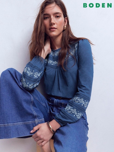Albastru - Boden Rosie Embroidered Jersey Top