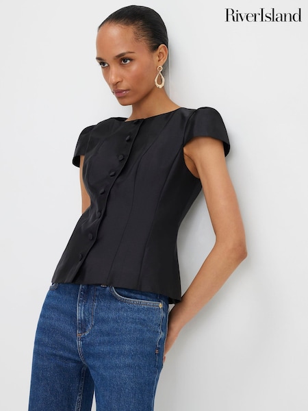 Negru - River Island Button Front Puff Sleeve Top