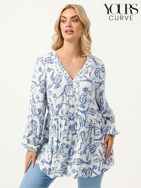 Albastru - Yours Curve Ruffle Placket Boho Blouse