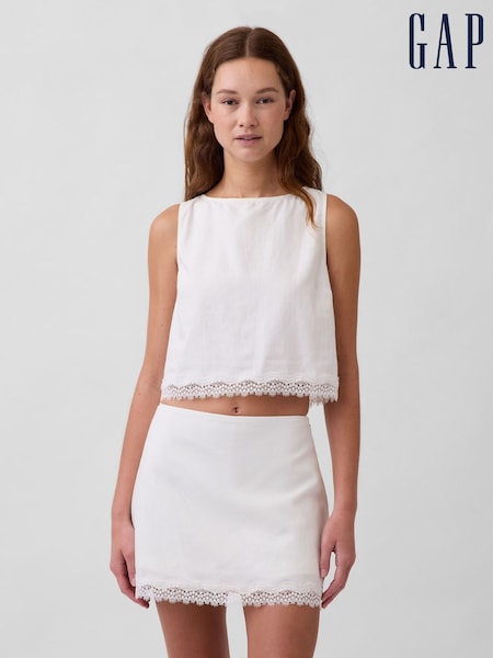 Alb - Gap Linen-Blend Lace-Hem Crop Shell Top