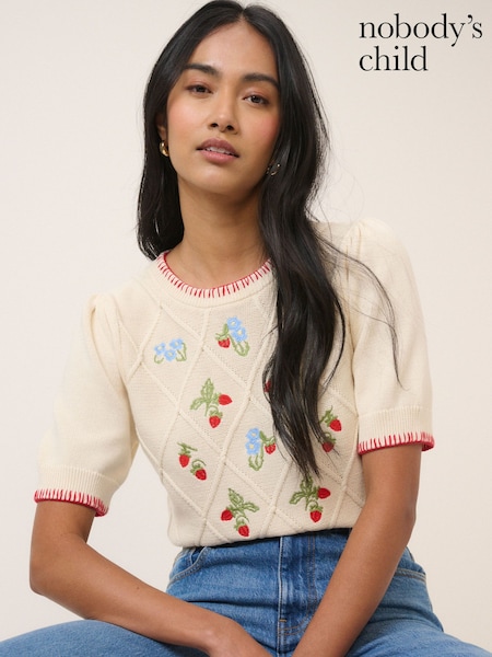 Nobodys Child Strawberry Embroidered T-Shirts