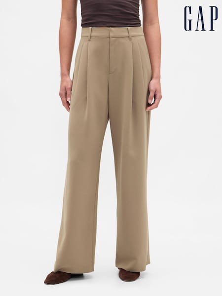 Bej - Gap 365 Talie înaltă Pleated Pantaloni