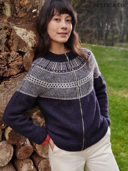 Celtic & Co. Blue British Wool Yoke Stitch Cardigan