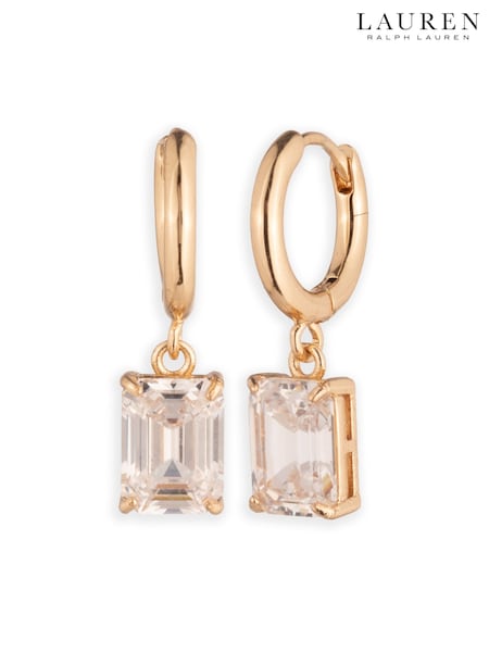 Lauren Ralph Lauren Gold Tone 14 mm Hoop Earrings with Erinite Drop