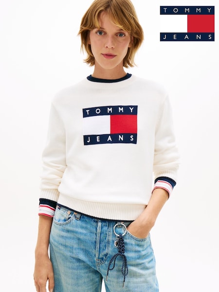 Tommy Jeans Intarsia Flag Badge Tipped Relaxed Jumper