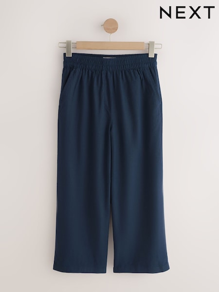 Bleumarin - Fustă pantalon cu șnur pe talie din amestec de in