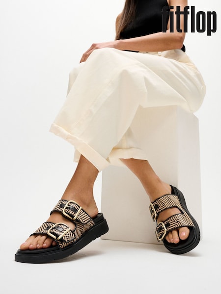 Negru - FitFlop Gen-FF Buckle Graphic Weave Two Bar Slides