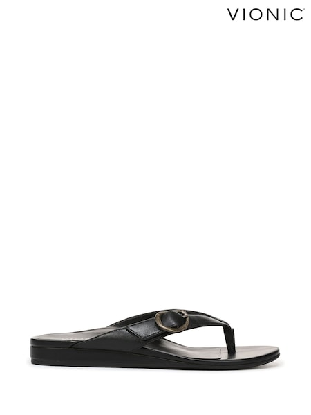 Negru - Vionic Extra lat Dillon lucioase Arch Support Toe Post Sandale