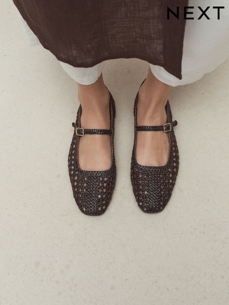Maro Ciocolată - Forever Comfort® Square Toe Woven Mary Jane Shoes