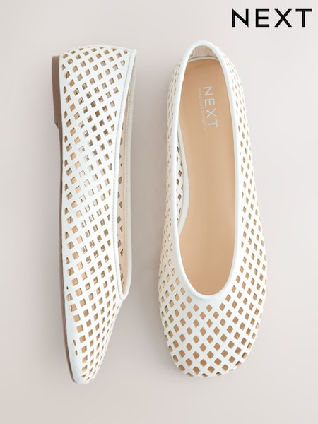 Alb - Balerini cu împletituri din piele Forever Comfort®