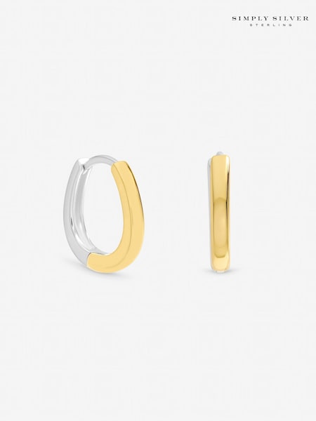 Simply Silver Two Tone Half And Half Hoop Earrings